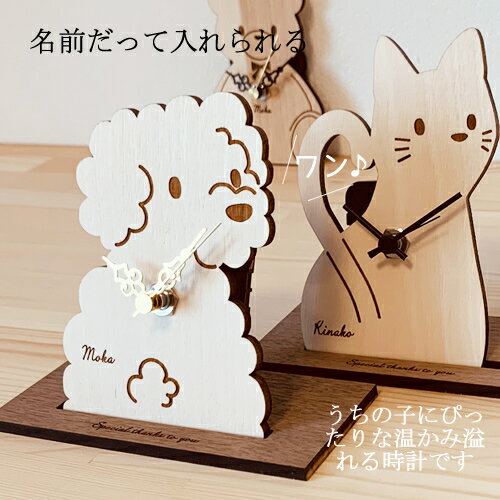 商品特徴 愛らしい猫や犬を模った、名入れ可能な 置時計にも掛時計にもなる2way木製オリジナル時計。