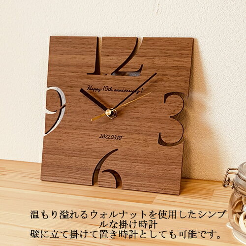 時計 壁掛け 木製 名入れ 置き時計 おしゃれ リビング 時計 壁掛け時計 置時計 とけい クロック かわいい シンプル ウォルナット 北欧 木製 ギフト プレゼント 手作り 名前入り メッセージ 父の日 母の日 出産祝い 日本製 インテリア 四角 置時計 小さい かわいい 木の時計